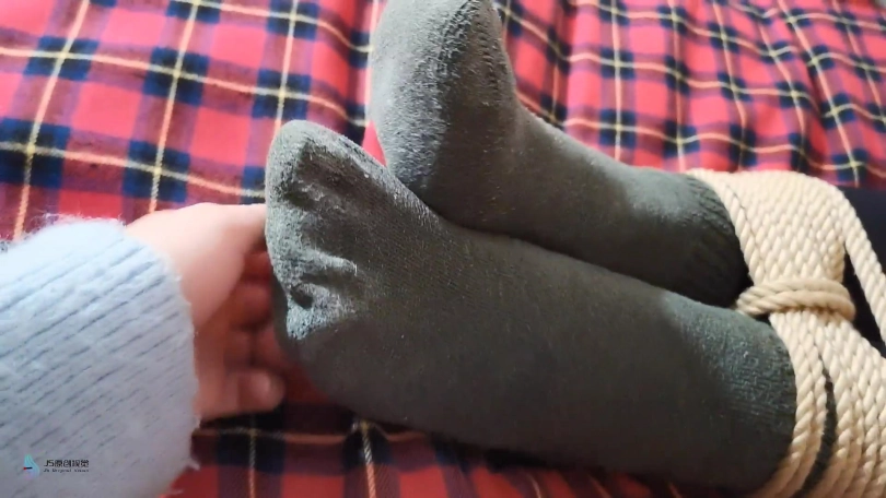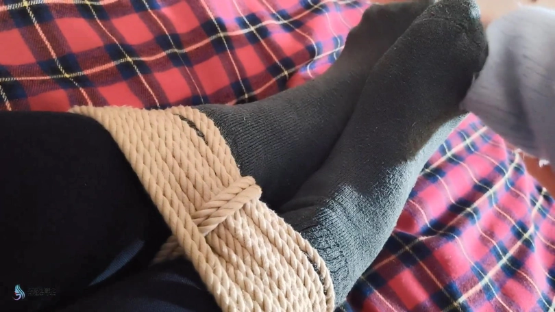 把小安龟甲捆绑起来,挠她的脚丫,抚摸她的敏感地带,用穿着棉袜的脚丫放在小安的脸上,命令她亲吻,闻脚上的味道。用快乐棒不断刺激着小安下面。。。