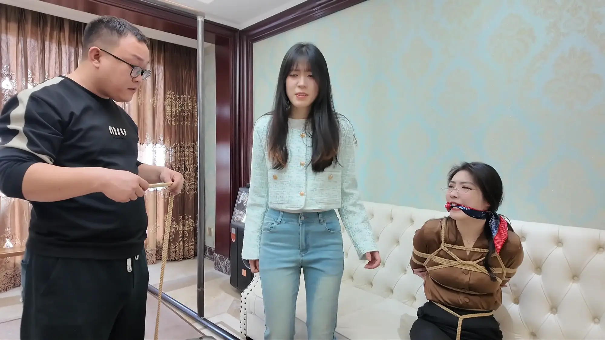 与此同时,米粒挣脱了束缚刚刚准备逃跑,房东正好进入卧室,他立马冲上去将米粒按倒在床上,表示要把米粒绑的更紧一些。画面一转,米粒被反扭着双手带到了大厅,小智与老师眼睁睁的看着米粒被房东紧缚,最终米粒被后高手捆绑放置在椅子上,三人面面相觑,房东见老师不停点头,便将她嘴上的丝巾拿掉,老师嘲讽房东一个大男人欺负她们三个弱女子,并表示自己绝对不会屈服,气急败坏的房东给了老师一巴掌再次用丝巾将她的嘴堵上。随后房东便开始挠三人的脚心。