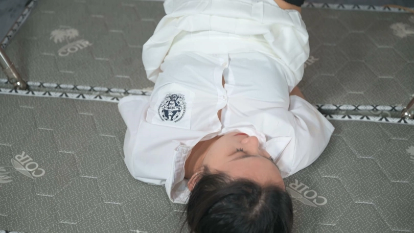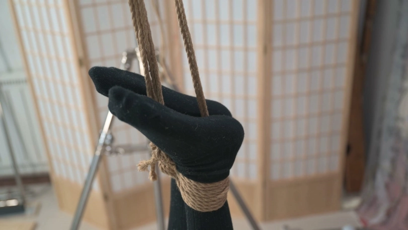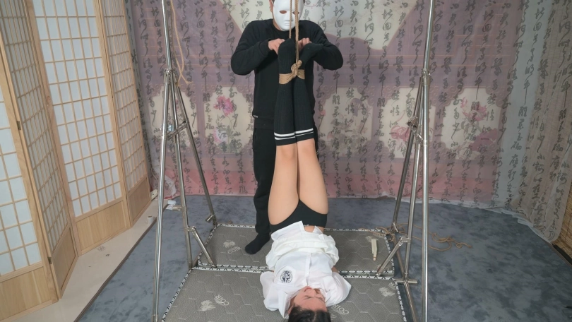 拍摄之前要求妹子提前三天节食,还真有作用,大腿明显瘦了,那就把双脚高高吊起,让我们好好欣赏绝对领域,而且这个姿势很适合玩TK,并且电击裙子和袜子之间的部位别有一番滋味。
