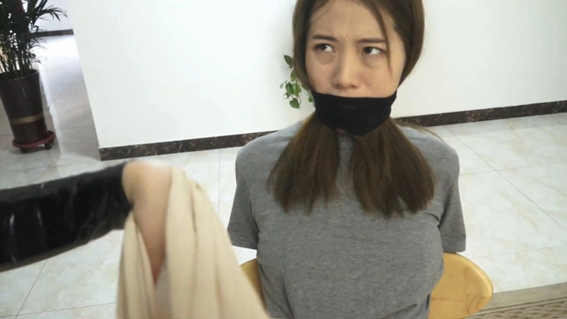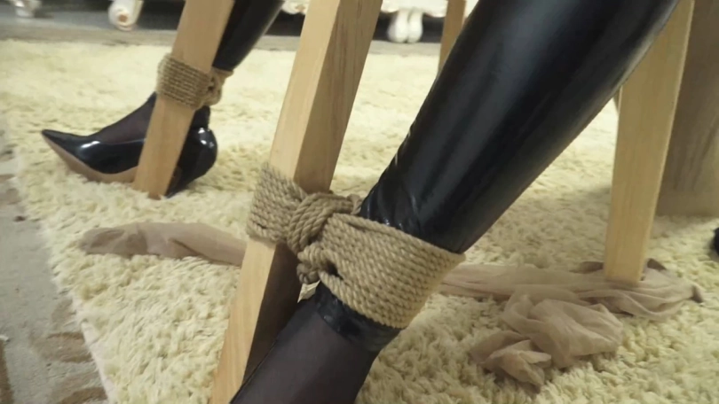 【逍遥】入室抢劫02 蒙面女遭面具男黑吃黑,无奈被绑, 丝袜全包+双人椅挣扎