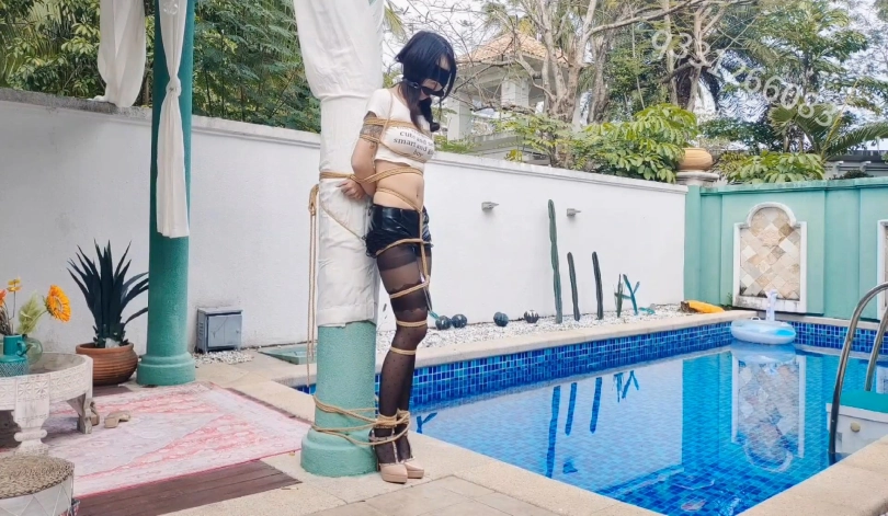 【欢乐谷】被捆绑放置在泳池别墅里尤物以及深度尺度调教