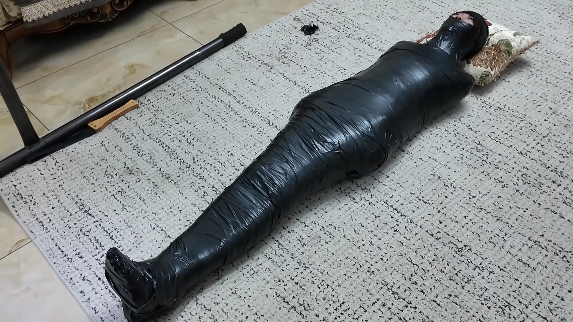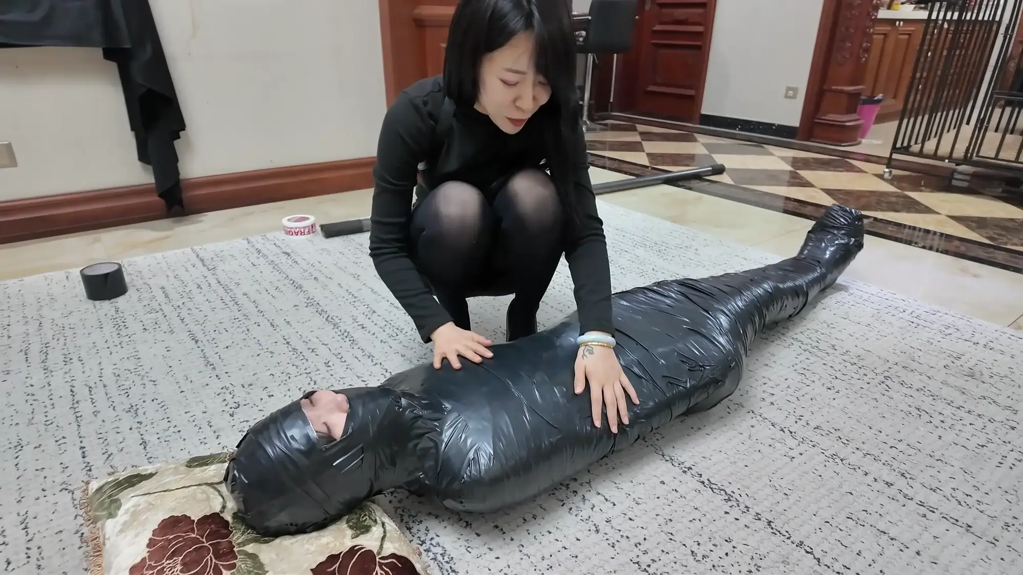 米粒还把雨琦的脚和头也包了起来包完后,米粒骑在雨琦身上,说:怎么样,很难受吧,就是让你不好受。并抚摸着雨琦的脸和身体