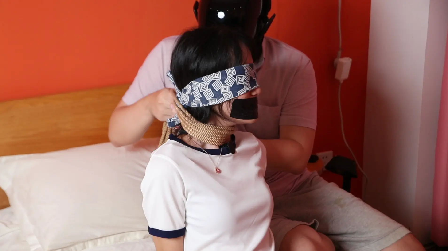 将黑匡威瑜伽裤小姐姐迷晕后将她放在床上,等她苏醒之后玩弄她的胸以及她的脚丫子,并拿小刀不断恐吓她,小姐姐被吓得嗷嗷直叫。