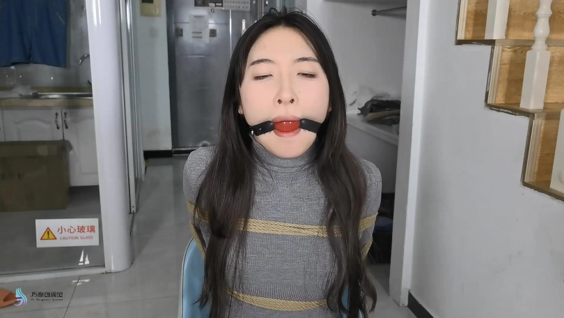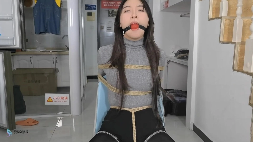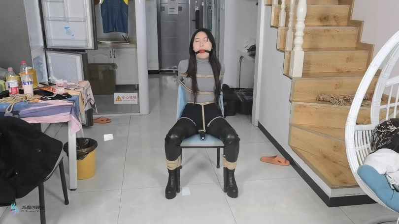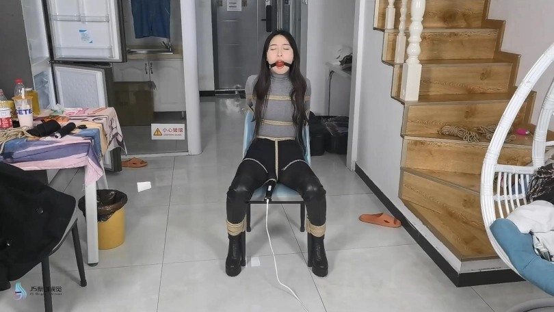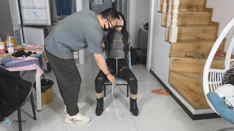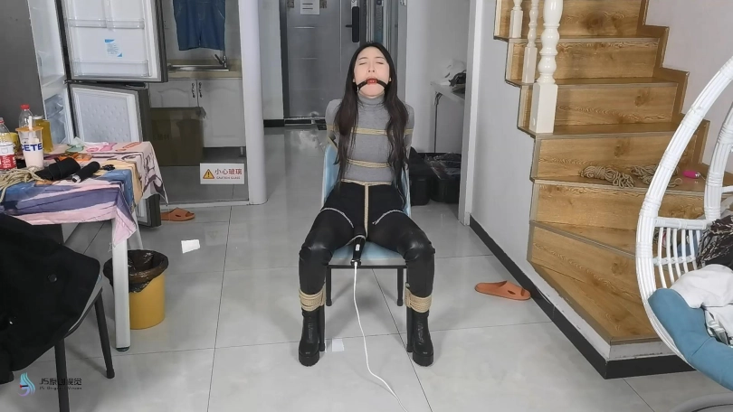 男人觉得还不够,给女贼换了一个震动力更强的黑色棒棒,继续刺激着女贼。