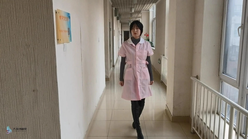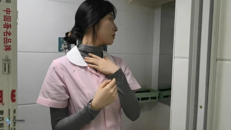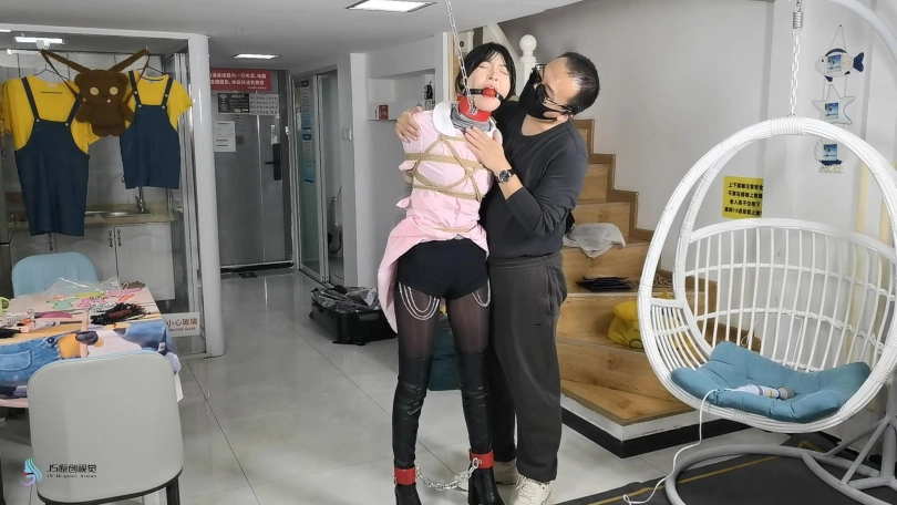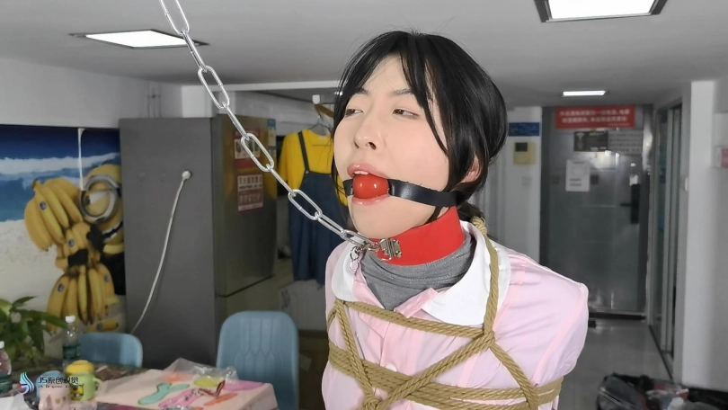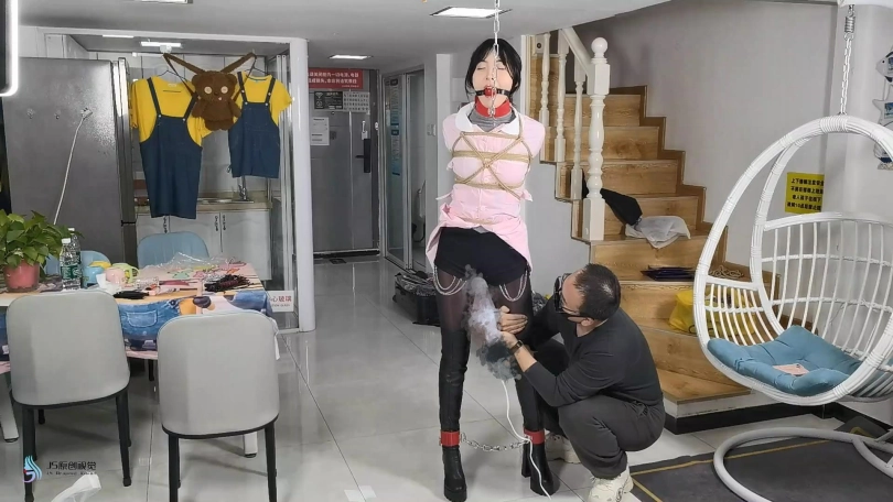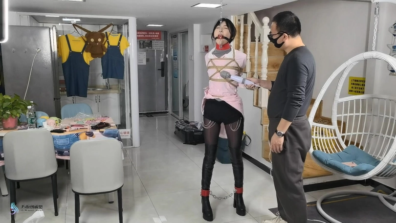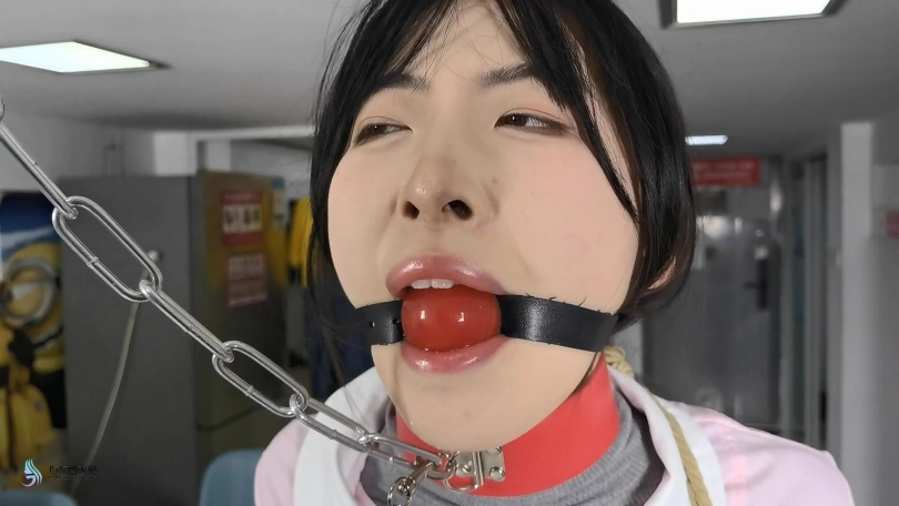 女护士上班没有按规定穿着平底鞋,医生只是说了她两句,护士却不耐烦的怼了回去。于是医生决定好好教训下这个脾气暴躁的护士妹妹。护士正在照镜子,男人从后面突然冲过来捂住了她的嘴巴。当画面再次亮起时,女护士已经被欧式直臂捆了起来。她的嘴巴被塞着一个大红口球。脖子上被戴上了强直抬头的脖套,脖套上链接着铁链拴在上方。护士的脚上也被戴上了皮质脚铐。护士因为穿着高跟长靴,长时间的站立放置,让她的双脚很是难受。这时男人走了过来,开始用皮鞭抽打着护士,又拿电动棒棒对着护士的下面就是一顿疯狂输出。护士被着强烈的快感刺激的发出享受的呻吟声音。这时男人准备对护士换个方式调焦。