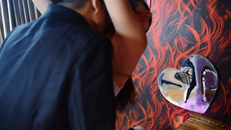 提前定了一个情趣酒店的房间作为拍摄场地,恰好房间里有个钢管舞台,导演拍摄前一天灵感大发,连夜写了一个剧本,把定拍要求串联起来形成这部佳作,有透透的裹胸、强高、竹夹虐乳、白丝、腋下、剪衣、强吻等要素,演员的演技也是可圈可点,特别是声音简直销魂!