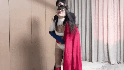 神力女超人在休息日慵懒地躺在床上休息,突然收到警报,她生气地换上战斗服(脱短靴黑丝、换肉丝、穿战斗服、戴手套靴子披风),挥披风出发迎敌。战斗中,她自信满满地嘲讽机器人,结果被机器人抓住拳头、重拳击腹、抱腿猛打大腿、勒腰抱摔、抓头发砸头、掐脖子吸收能量,陷入苦战,最终被迫用热视线飞走逃跑。