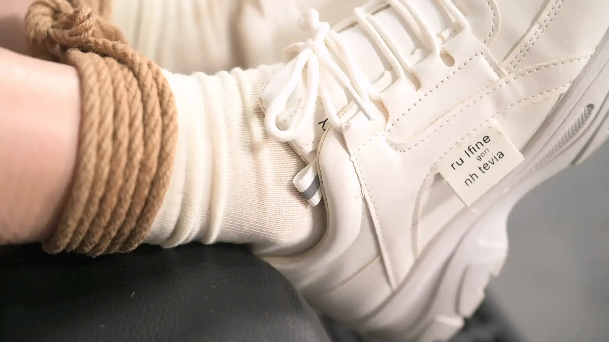 有句话叫太上心就变态了,当你对美腿玉足的喜爱达到一定程度,行为就不能被常人理解,幸好我们这里都不是常人。当我们把玩玉足,当然要带一点味道才好,味道或浓或轻就依个人口味了,只是夏天还好说,可以挑最热的时候带妹子去户外徒步一圈,可到了天气冷的时候就不好办了,于是有了今天的设计,给妹子穿上棉袜和加绒的运动鞋,然后用麻绳捆住,别让她跑了,再用我这无敌电暖气给烤上,简直是完美解决方案。由于是第一次尝试,雪碧好像没领会我的意图,她以为是一种酷刑,展现出高质量敬业精神,辛亏中间我摸了一下鞋子,已经烫手了,咱的目的是发汗,这属于大火爆炒了,赶紧改成小火慢炖模式,等发出汗来就可以出锅了,如此热气腾腾的棉袜脚还是第一次品鉴,特别给了浅景深大特写,最后当然要把这双棉袜密封作为实验数据,喜欢的话以后继续尝试。