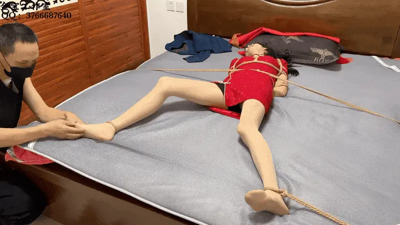 木子姑娘的装束更加轻薄显身材,奋力挣扎的玉臂和乱蹬的筷子腿让人欲罢不能,在与铁架、五花、驷马、股绳、口球的缠斗中汗水、泪水、口水横流,让人怜爱。男演老师经验丰富,不仅绑法过硬而且完美还原了二叔的奸诈与痞气。
