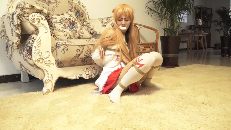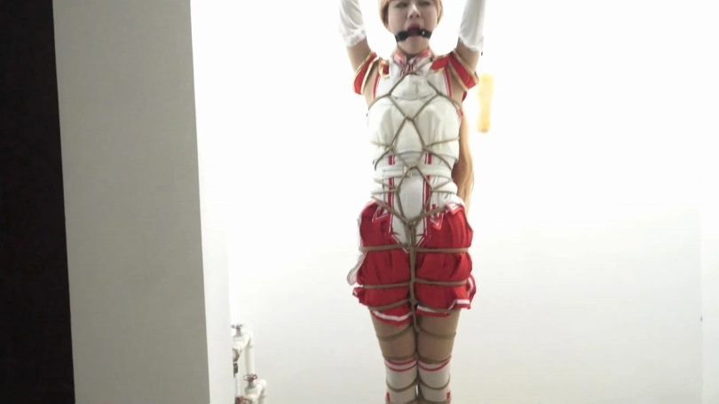 昏迷的亚丝娜被入侵者吊绑起来,不仅用绳索捆绑全身,无法动弹。更是即将要踮着脚尖承受着入侵者残忍的鞭挞……
