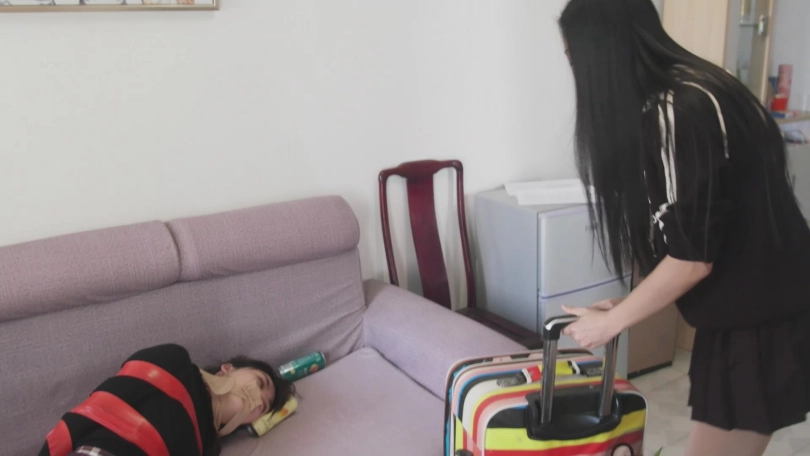 文莉也不敢反动,只好任其摆布。这个人同样用胶带将文莉手脚捆绑,但并未堵嘴,因为他要知道钱在哪里。