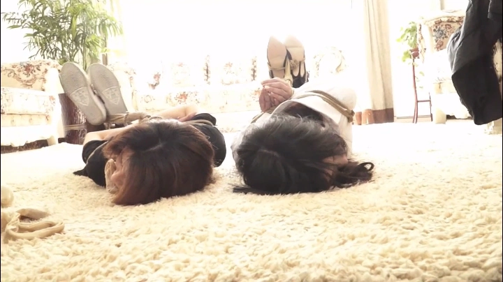 男人将师生驷马捆绑,联系买主。师生挣扎。等待买主到达。