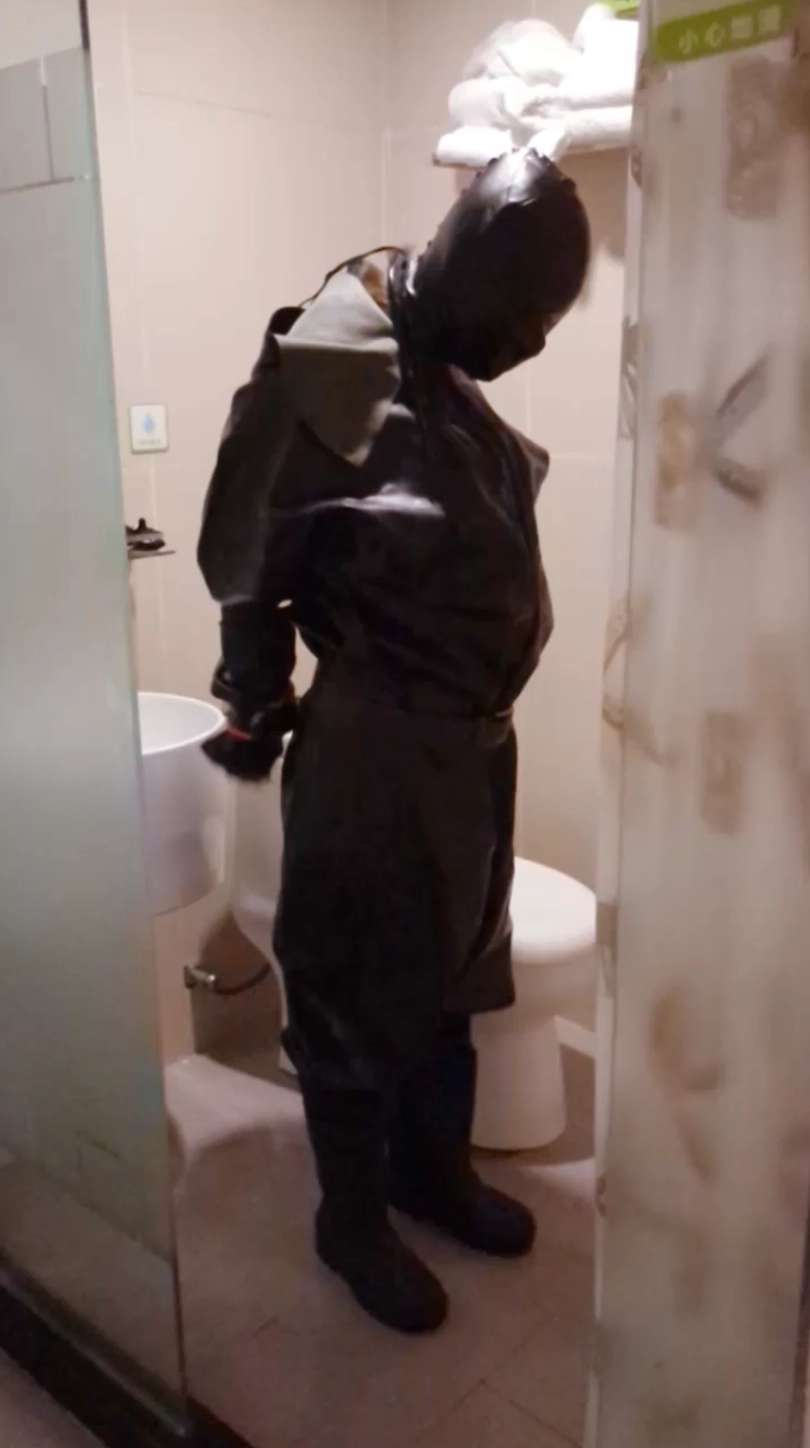 拍摄过程中,为了满足她的好奇心,就连我也被她要求穿上了乳胶紧身衣、拘束带、防毒面具甚至是贞操锁......紧接着就是给她各种穿戴着来玩:狗狗头套、防毒面具、下水服、口塞、带牙套笔管的头套......