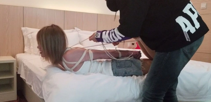 新妹子体验呼吸控制加口球加支臂驷马,这个妹子长得很可爱,柔韧性也非常的好。相当的耐绑。