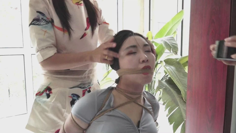 江芸:(慌忙用丝袜塞住刘倩的嘴,然后用手捂住)