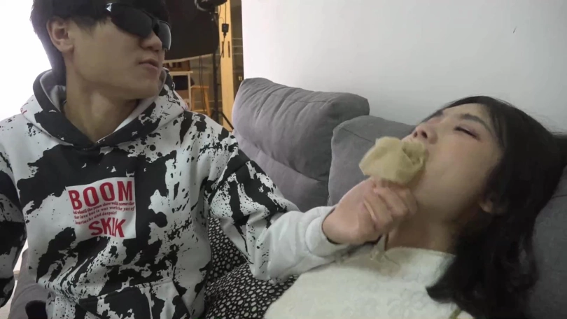 劫匪用晓璐穿过的一条肉色连裤丝袜,塞入她的口中,把她塞得直翻白眼,又脱掉晓璐脚上穿的一双黑色短丝袜,把这双原味短丝袜也塞入晓璐的口中,塞得她直恶心。