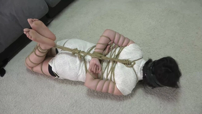不过,在晓璐想逃跑的时候,她被从里屋出来的劫匪抓住,很快重新被结结实实五花大绑,双腿与脚踝也被并拢很多道。