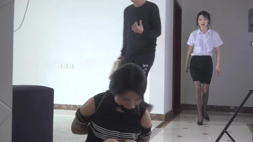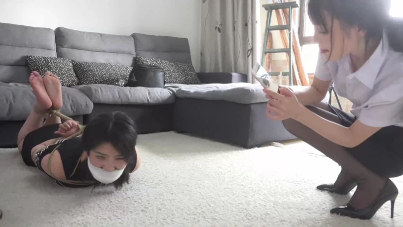 很快,晓璐的嘴巴也被二人用黑色胶布、静电胶带、白色自粘绷带缠绕封住,二人更是将其捆成驷马,故意拍照给晓璐看加以羞辱。