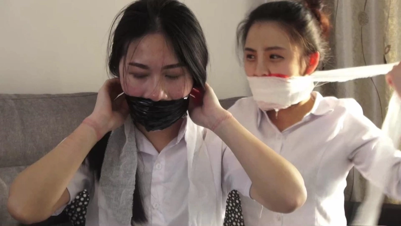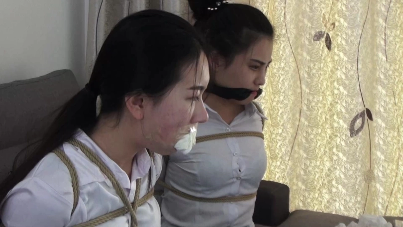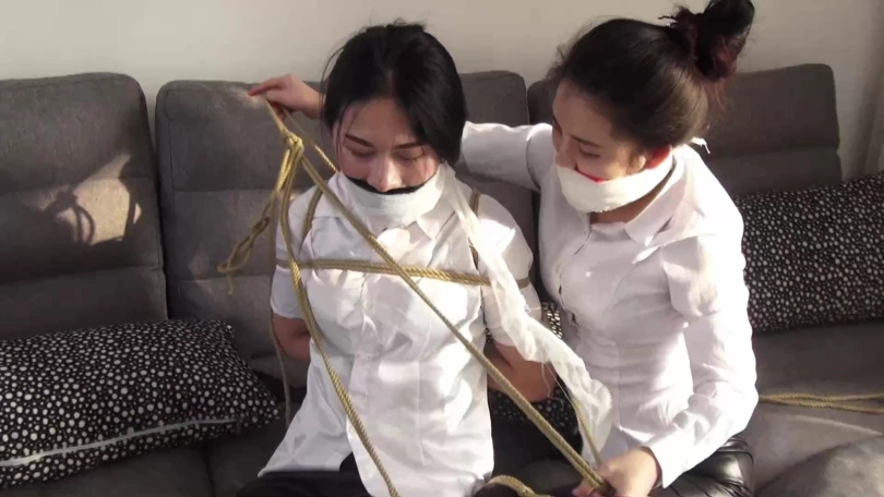 看点:姐妹连缚,棉袜塞嘴,短丝袜塞嘴,互助解绳挣脱。