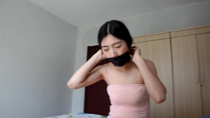 看点:双内裤塞满嘴、胶布绷带多重缠绕封嘴、自行挣脱、肉色丝袜脚面特写。